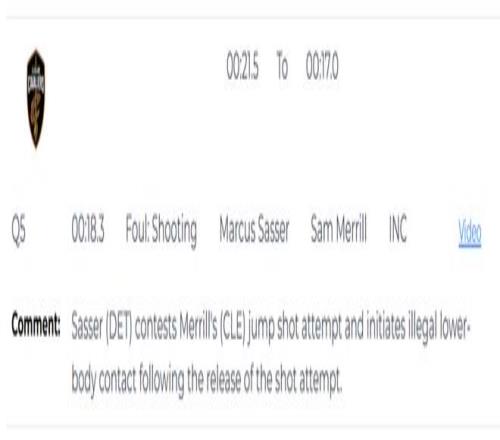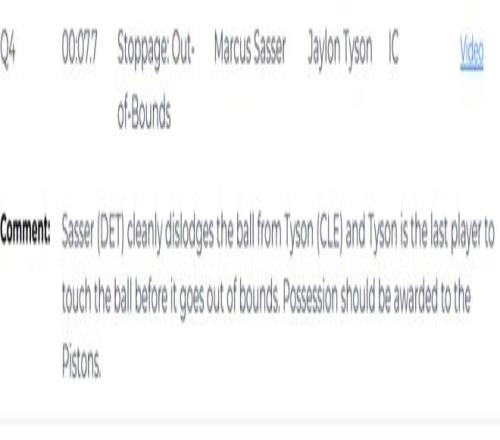 第四次是漏判,發生在距離加時賽結束還有18.3秒,薩瑟在梅裏爾三分跳投出手後,主動用下肢進行了非法接觸,幹擾了他的投籃。這是一次漏吹的防守犯規,梅裏爾本該獲得三次罰球機會,有望扳平比分。活塞獲利,騎士吃虧。