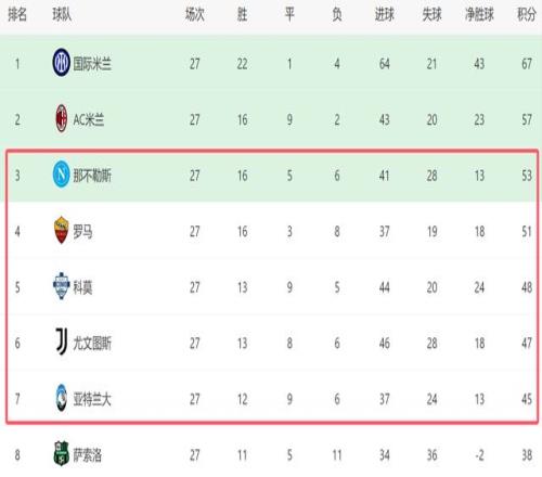 在這一夜,除了羅馬和尤文戰平之外,亞特蘭大也沒能拿到3分,他們在客場1-2輸給了薩索洛,無緣取得4連勝。由於意甲3強連續不勝,爭四的格局也更加混亂。截至目前,從第三的那不勒斯,到第七的亞特蘭大,這5支球隊就差了8分,他們當中最後很可能隻有2隊能拿到歐冠席位。盡管那不勒斯和羅馬現在有積分優勢,但是身後的對手都對前四虎視眈眈,在最後的11輪比賽中,還有很大的變數。