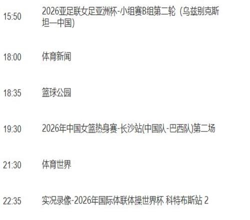 同樣,中超首輪在3月7日、8日分別進行的5場、2場比賽,暫時也都沒有進入央視節目單。不過,從節目單來看,央視似乎預留有轉播窗口。比如,3月7日下午時段,CCTV5安排播出的是2026年米蘭科爾蒂納冬殘奧會-輪椅冰壺混合團體(美國-中國);CCTV5+則都是實況錄像(2026年世界職業拳王爭霸賽3、2025/2026賽季斯諾克威爾士公開賽2、2026年世界泳聯跳水世界杯 加拿大站1),完全具備轉播條件。相應時段的比賽有:天津津門虎VS重慶銅梁龍,山東泰山VS遼寧鐵人,上海申花VS大連英博。