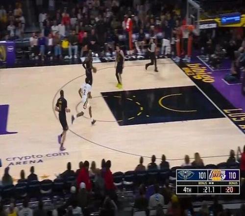 今天湖人逆轉鵜鶘,三連勝到手,在比賽還剩20秒時,湖人前場3打1,老詹在禁區放棄進攻。