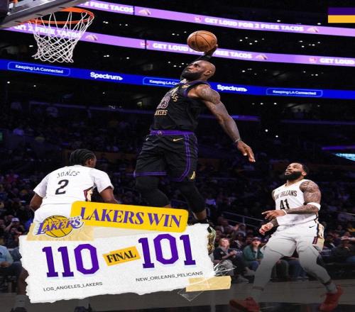 NBA常規賽繼續進行,洛杉磯湖人隊(37勝24負)繼續連勝。東契奇得到27分、10個籃板和7次助攻,勒布朗得到21分、7個籃板和7次助攻,他們率隊末節上演翻盤好戲,湖人隊在主場以110-101戰勝新奧爾良鵜鶘隊(19勝44負)。湖人隊拿到3連勝,鵜鶘隊遭遇2連敗。