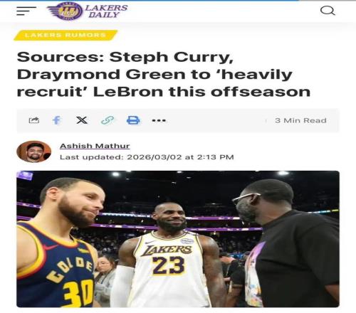 撰文稱庫裏追夢夏天將全力招募詹姆斯