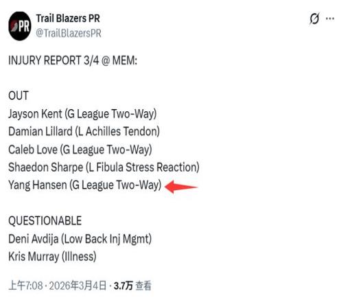 北京時間3月5日,開拓者官方在傷病名單上鬧了個烏龍,他們把下放到發展聯盟的楊瀚森,標注為“雙向合同”。楊瀚森隻是被下放,但他身背的還是一份NBA標準合同。