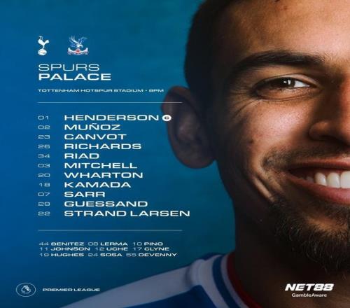 水晶宮首發:1-迪恩-亨德森、34-裏亞德、26-理查茲、23-康沃、2-穆尼奧斯、20-亞當-沃頓、18-鐮田大地、3-米切爾、7-伊斯梅拉-薩爾、29-蓋桑、22-拉森