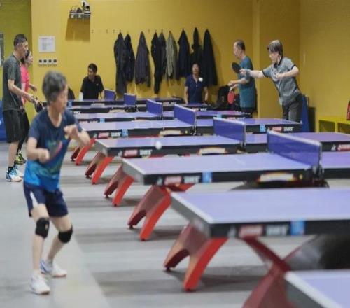 在北京回龍觀體育文化公園體育健身中心的乒乓球館內,居民打乒乓球鍛煉。 新華社記者 鞠煥宗 攝