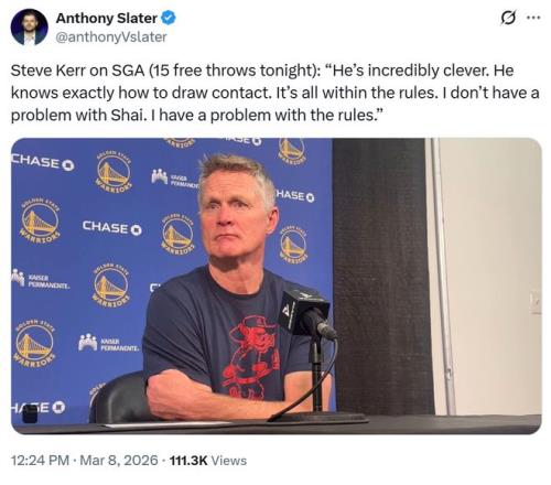 雷霆常規賽4-0橫掃勇士成西部唯一!SGA狂造15次罰球砍27+5+5惹爭議,科爾公開表達對於吹罰規則的不滿,哈登意外遭點名躺槍。