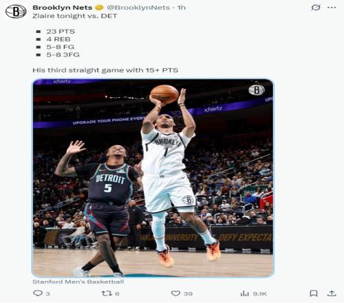 此役紮伊爾-威廉姆斯全場比賽31分鍾,三分8中5,罰球8中8,拿到23分4籃板1搶斷,三分命中率62.5%。