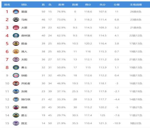 今日比賽後火箭、森林狼排名互換,其他西部球隊排名不變。