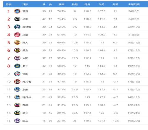 火箭輸球後39勝24負,排名從西部第三掉到第四,今日沒有比賽的森林狼坐收好禮,排名來到西部第三,森林狼領先火箭0.5個勝場。