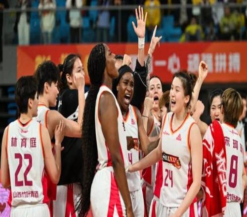▲山西女籃姑娘們圍在一起歡呼勝利