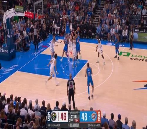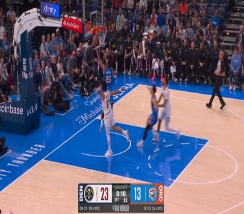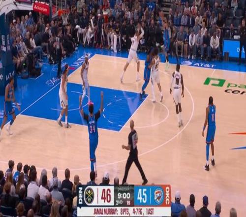 直至亞曆山大將米切爾替換下來之前,雷霆已經以51-46反超掘金——也就是說,從第一節被換上場到第二節被換下場,米切爾連續在場的這13分鍾裏,雷霆打了掘金一波43-24。