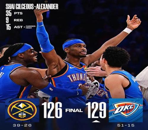 常規賽,雷霆主場129-126擊敗掘金。