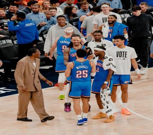 在因為髖部受傷缺席了一個半月後,本場比賽,米切爾迎來了複出(雷霆傳統,專門挑打掘金複出),然後他替補登場了29分鍾,投籃16中9,三分4中1,罰球5中5,拿下24分2籃板3助攻1搶斷0失誤。