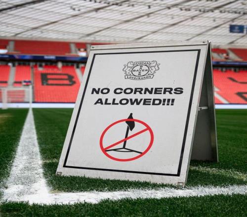 勒沃庫森官方社交媒體曬出趣味照片,主場角旗區被貼上“禁止罰角球”標識,並且配文“值得一試”,調侃阿森納超強的角球得分能力。