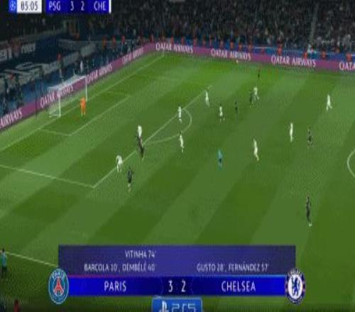 第40分鍾,護肝易善複丨登貝萊1挑2低射破門,巴黎2-1切爾西