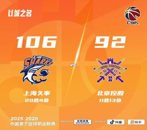上海男籃106比92擊敗北控男籃