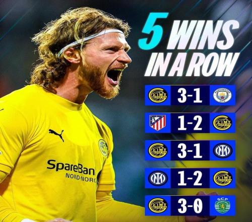 在剩餘的一場歐冠比賽中,本賽季的大黑馬挪超霸主博德閃耀主場3比0拿下葡萄牙體育,豪取歐冠5連勝。