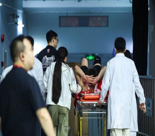 郭艾倫在3月6日的補賽當中,他在擊敗山東的末節比賽,在快攻上籃發生身體對抗後,郭艾倫落地時左膝受傷。郭艾倫痛苦捂著受傷部位翻滾,還用力拍打地板,隨後被擔架車給抬下場。