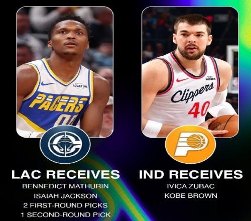 交易回顧:快船送出祖巴茨和科比-布朗,2換5得到馬瑟林、以賽亞-傑克遜、2個首輪、1個次輪。