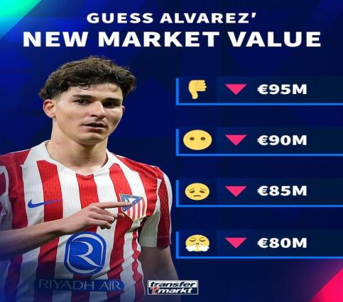 在此之前,德轉官方預熱阿爾瓦雷斯身價下跌,並列出了幾個可能的身價,分別是9500萬歐、9000萬歐、8500萬歐和8000萬歐。