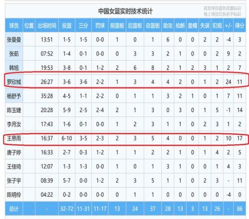 俗話說,數據不會說謊,從羅欣棫、王思雨的個人數據,正負值,就充分說明,她們的表現對球隊的幫助巨大,是球隊的贏球的最大功臣。
