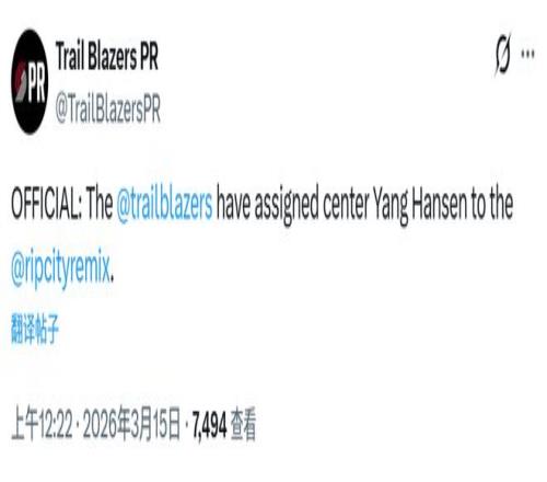 北京時間3月15日,開拓者官方宣布將球隊中鋒楊瀚森下放至G聯賽混音隊。昨日對陣爵士的比賽中,楊瀚森隻在比賽最後時刻登場48秒,各項數據為0,正負值-3。
