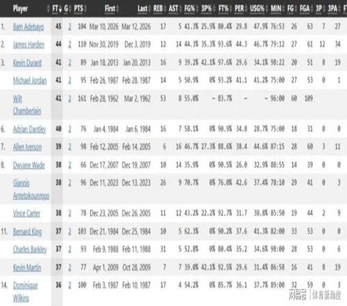 其中有兩項紀錄跟罰球那是“糾纏不清”。其一呢,阿德巴約兩場比賽加起來,罰球次數高達56次,直接把小喬丹從“罰球紀錄寶座”上給拽了下來,自己美滋滋地坐了上去,成了NBA曆史新晉“罰球王”。其二更猛,兩場比賽靠罰球就拿了45分,把哈登都給比下去了,這罰球得分能力,簡直比印鈔機還猛!