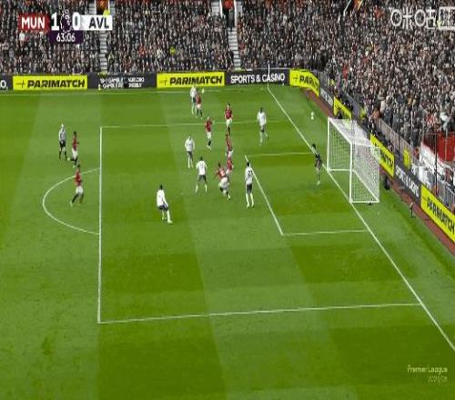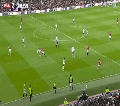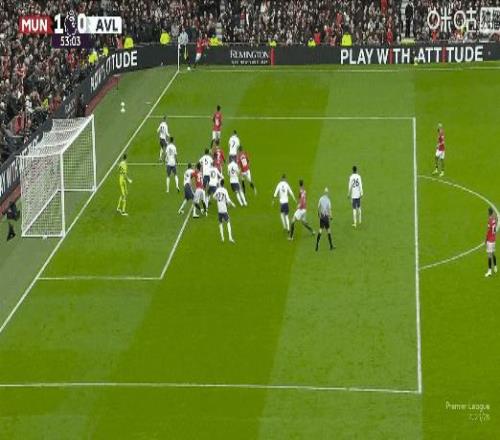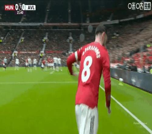 聯賽第7球!比賽第53分鍾,B費角球助攻卡塞米羅頭槌打破僵局,曼聯1比0維拉!