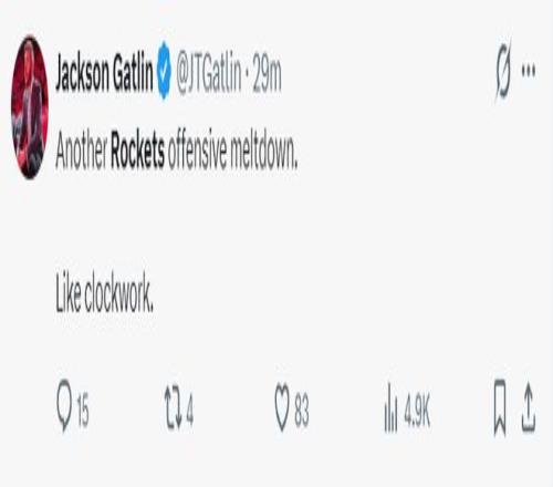 火箭記者加特林:火箭隊又一次進攻崩潰了,就好像又定時鬧鍾一樣準確無誤。