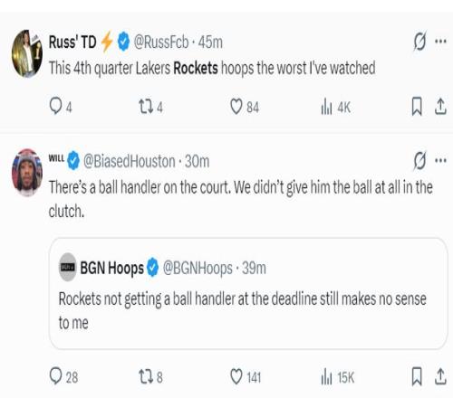 美媒:火箭第四節VS湖人的比賽是我見過最糟糕的一場。