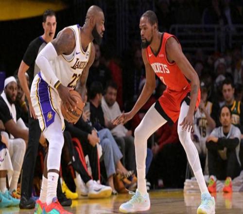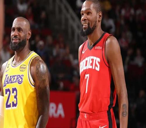 NBA常規賽,火箭坐鎮主場迎戰湖人。本場比賽的最大焦點,自然集中在詹姆斯和杜蘭特兩位超巨球員身上。