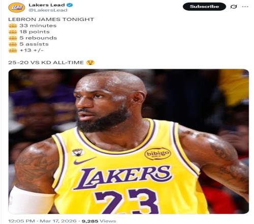他全場比賽33分鍾,13中7,三分3中1,罰球4中3,拿到18分5籃板5助攻2搶斷1失誤,命中率53.8%,真實命中率61%,正負值+13的全麵數據。詹姆斯自3月13日複出以來湖人沒有輸過球。