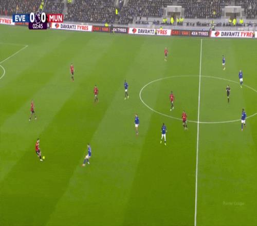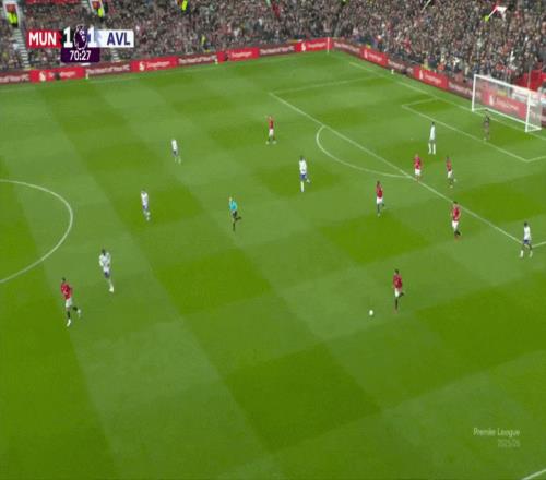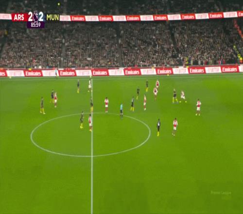 另一個例子來自接下來一周3比2戰勝阿森納的比賽,曼聯門將拉門斯大腳長傳找謝什科,梅努和費爾南德斯處於爭奪第二點的理想位置。