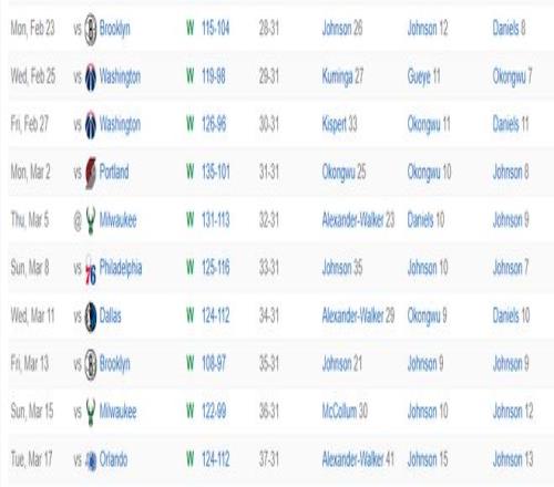 北京時間3月17日,NBA常規賽,老鷹124-112大勝魔術拿到10連勝。此役老鷹一度領先魔術29分之多,雖然末節魔術打出了一波小高潮但前麵的坑太大還是無法追回,約翰遜24+15+13再度拿到三雙。