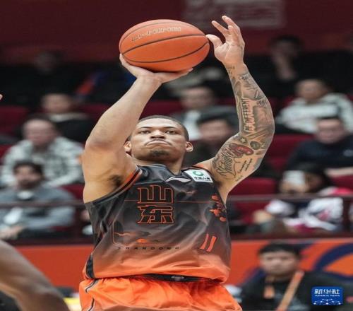 3月16日,山東高速隊球員約翰遜在比賽中投籃。新華社記者 朱崢 攝