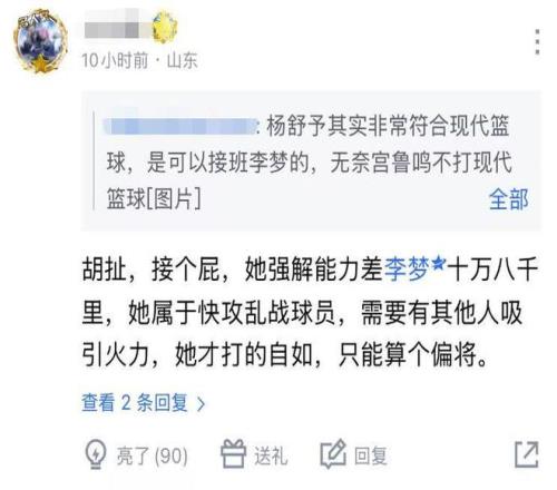然而對於楊舒予在世預賽中規中矩的表現,球迷並不買賬:“她強解能力差李夢十萬八千裏,屬於快攻亂戰球員,需要有其他人吸引火力,她才打的自如,隻能算個偏將”、“男籃有楊溢、崔永熙,現在又來個你,廣東盛產領袖啊”、“她姐在黃金一代隻能算還可以,不能指望她們發生什麽質變,所以一點也不看好她們打強隊。”