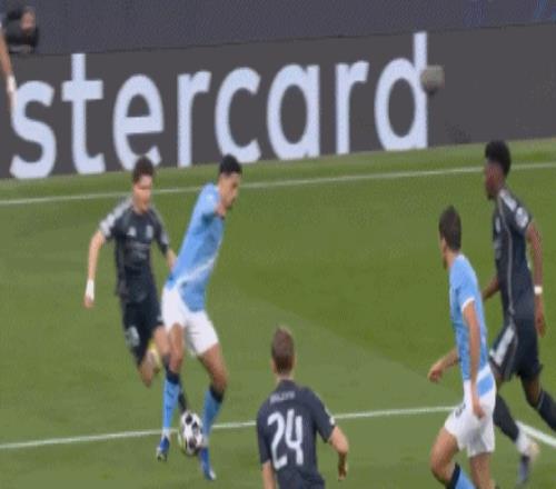 第22分鍾,B席手球紅點,維尼修斯點射,皇馬總比分4-0曼城