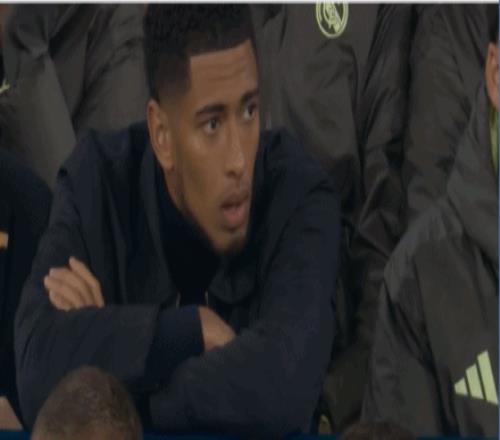 第15分鍾,鏡頭給到了因傷缺陣的貝林厄姆和替補的姆巴佩