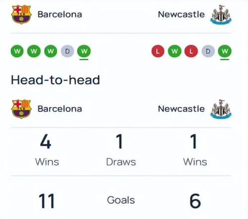 巴塞羅那 vs 紐卡斯爾(首回合1-1)