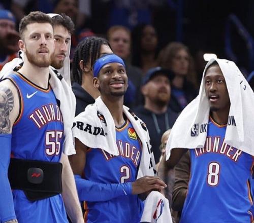 從領先18分到落後7分再到5分險勝,雷霆隊有驚無險帶走勝利,班凱羅和SGA上演神仙打架。班凱羅出戰36分鍾,21投12中(三分球6中3),獨砍32分+10籃板+5助攻。SGA出戰35分鍾,27投14中(三分球5中3),罰球11中9,爆砍40分+5籃板+2助攻+4搶斷。據NBA官網數據統計,這是SGA連續129場比賽砍下20+,刷新自己保持的NBA曆史紀錄。