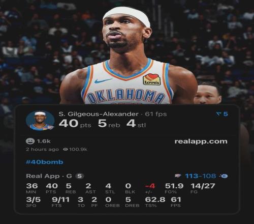 雷霆的當家球星亞曆山大,本賽季繼續強力輸出,至今出戰57場比賽,場均上陣33.6分鍾狂轟31.7分4.5板6.6助1.4斷,三項命中率54.9%、38.9%和89.3%,正負值+10.6高居聯盟榜首,投籃命中數(10.9)與罰球命中數(8.2)同樣均是聯盟第一。