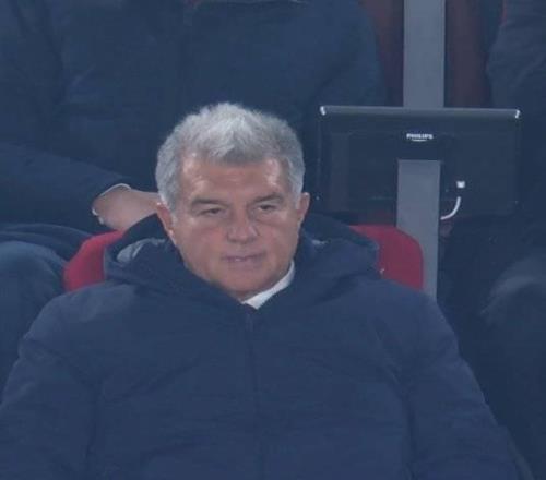 目睹此場景,剛剛成功連任巴薩主席的拉波爾塔在看台上露出了有些鬱悶的表情。