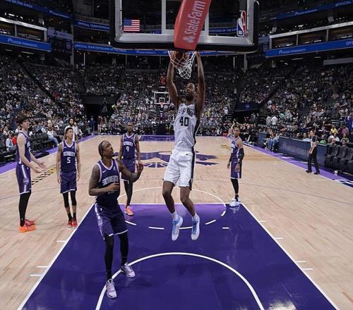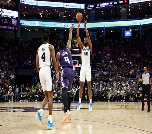 本場比賽中,馬刺的先發鋒線大將哈裏森-巴恩斯(Harrison Barnes)的表現還是相當不錯的。巴恩斯全場出場21分44秒,投籃7中6,三分線外5中4,得到了16分4籃板3助攻的數據,還有1次失誤和1次犯規,正負值為+19。時隔多場比賽後回到了先發陣容的巴恩斯展現出了自己不錯的得分能力和投射能力,他也是在出手次數不多的情況下得到了不少分數,他還展現出了一定的傳球能力和策應能力。巴恩斯在防守端的表現也是中規中矩的水平,也算是能夠起到一定的作用。至少在本場比賽中,巴恩斯的表現還是值得肯定的,在各方麵都發揮出了自己的水平,很好地扮演了自己的角色。