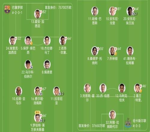 紐卡主帥埃迪-豪則沿用此前陣型,哈維-巴恩斯、安東尼-戈登和埃蘭加組成進攻三叉戟。