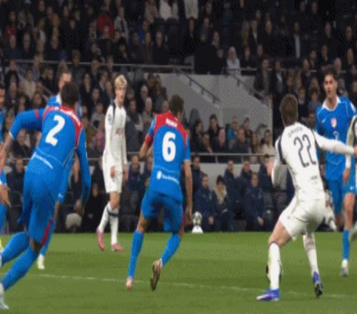 第52分鍾,哈維-西蒙斯兜射破網,熱刺2-1!總比分4-6!