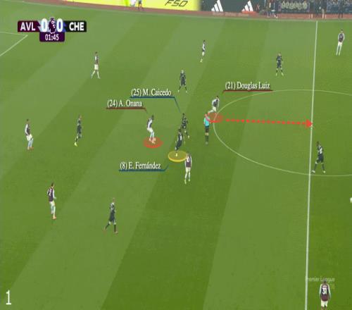 或出場時間更長(3565分鍾)。當其他人在無休止的比賽負荷下萎靡或受傷時,費爾南德斯帶著相當大的不適堅持出場,保持了自己的可用性,他在十一月透露過去四個月一直在處理膝蓋骨水腫問題。</p><p><strong>然而,對切爾西主教練來說,最大化費爾南德斯的優勢同時最小化他的弱點並非易事。無球狀態下,他的位置感和缺乏回追速度可能是個大問題,增加了隊友的防守負擔</strong>。<strong>波切蒂諾決定將這位阿根廷人與凱塞多——一名極具侵略性、四處遊走的搶截型中場——搭檔在中場底部,這讓球隊變得異常開放。這不是他們在2023-24賽季丟掉驚人的63個英超進球的唯一原因,但是一個重要因素</strong>。</p><p><strong>許多例子都說明了為什麽切爾西這兩筆最昂貴的中場引援並非中場中路理想搭檔</strong>。</p><p>例如,費爾南德斯傳球失誤,然後慢了一步未能封堵阿馬杜-奧納納,導致凱塞多過來協防。這留下了道格拉斯-路易斯在切爾西中場線後處於空位,雖然費爾南德斯設法回到了防守中,但他錯過了兩次攔截球的好機會,也跟丟了巴西人的前插,後者靈巧地接應利昂-貝利的低傳破門:</p><p class=)