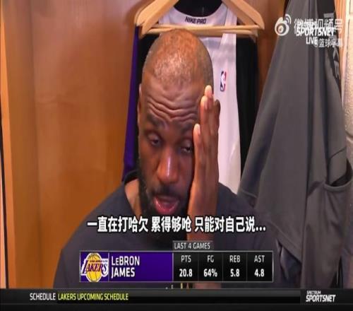 3月19日消息,3月19日結束的NBA常規賽中,湖人124-116客場擊敗火箭,豪取七連勝。本場比賽,41歲的湖人老將詹姆斯爆砍30分5籃板,賽後詹姆斯表示,其實自己賽前狀態很差,一直打哈欠,也一直在自我勉勵挺一挺。