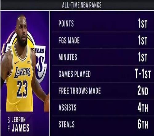 1611場!恭喜詹姆斯,坐擁6項第1,史無前例,仍有一紀錄等他打破
