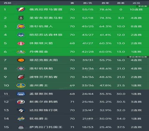 北京時間3月20日,今日的NBA常規賽結束了所有比賽,香蕉视频网址看看西部的最新積分榜,主要的信息是:馬刺101-100絕殺太陽,湖人134-126熱火豪取8連勝,快船99-105鵜鶘,國王118-139慘敗76人,爵士128-96大勝雄鹿!