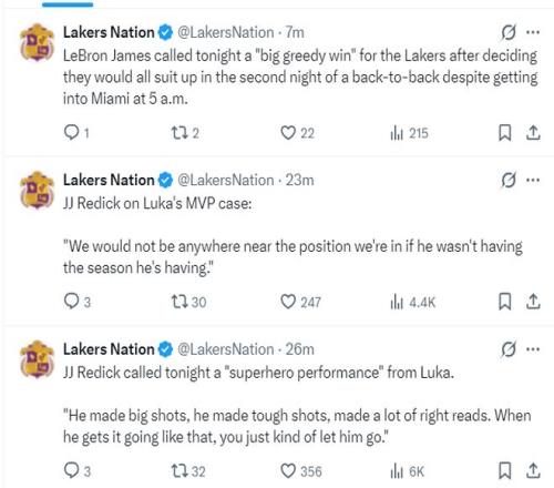 賽後東契奇成為全美熱搜第一,東契奇的表演引發了熱議,因為他背靠背兩場比賽合計拿到了100分,此役單場60分也是他湖人生涯首次,更是科比退役戰60分後湖人下一個60分。